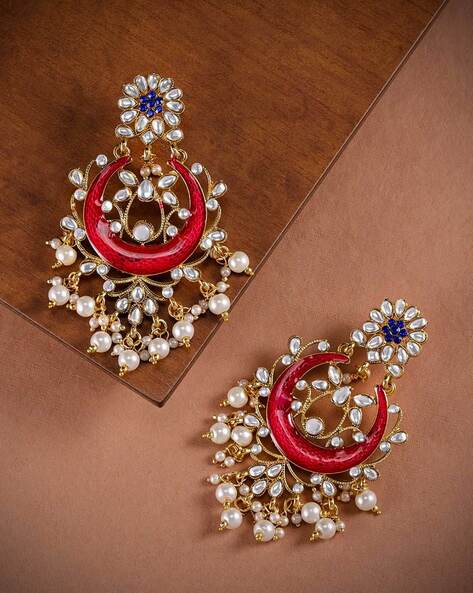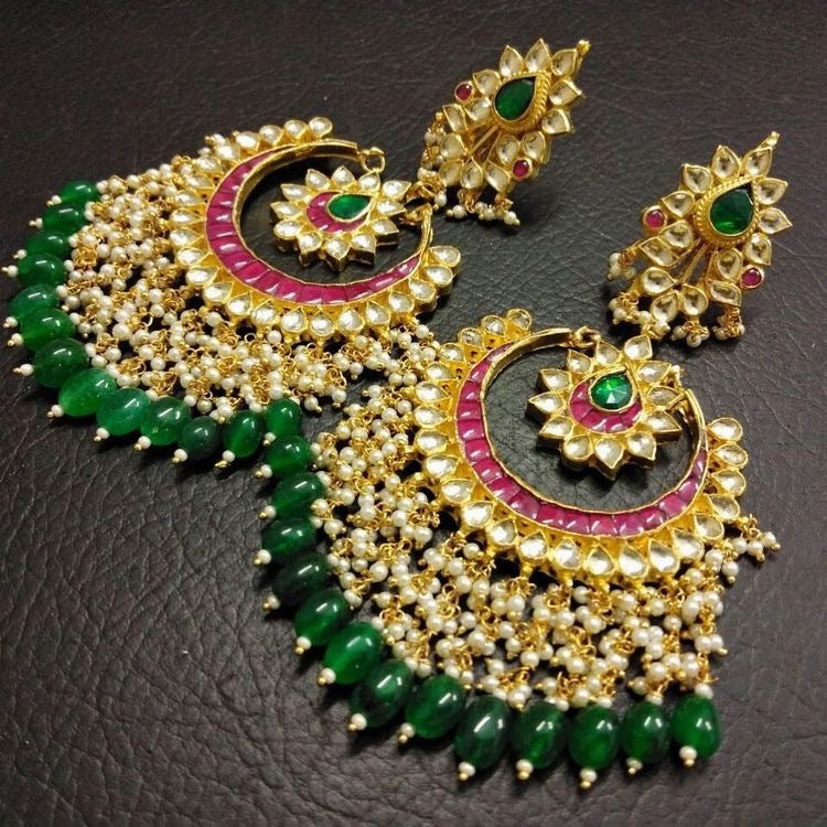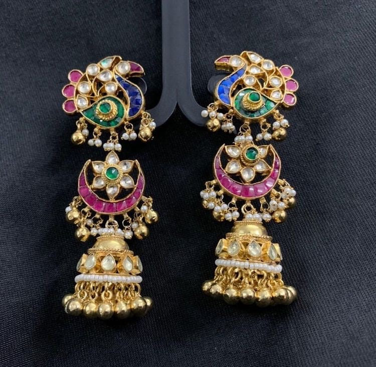 Antique Gold Plated Kundan Jumkhi Set.