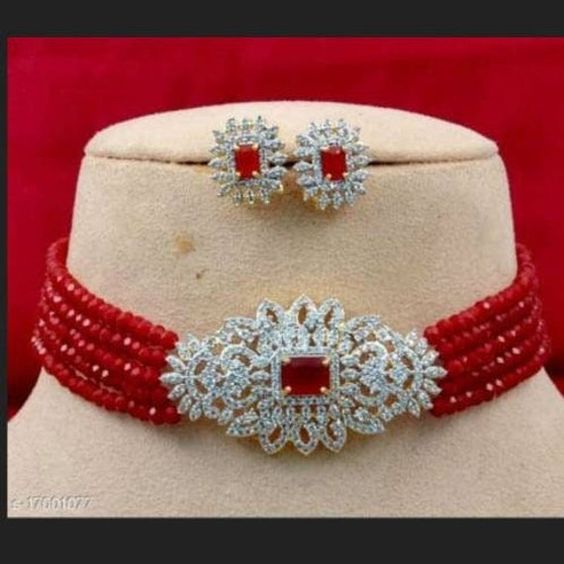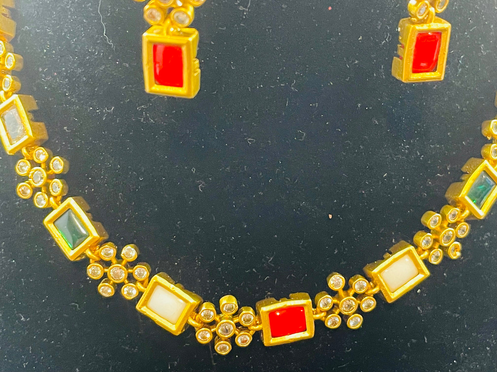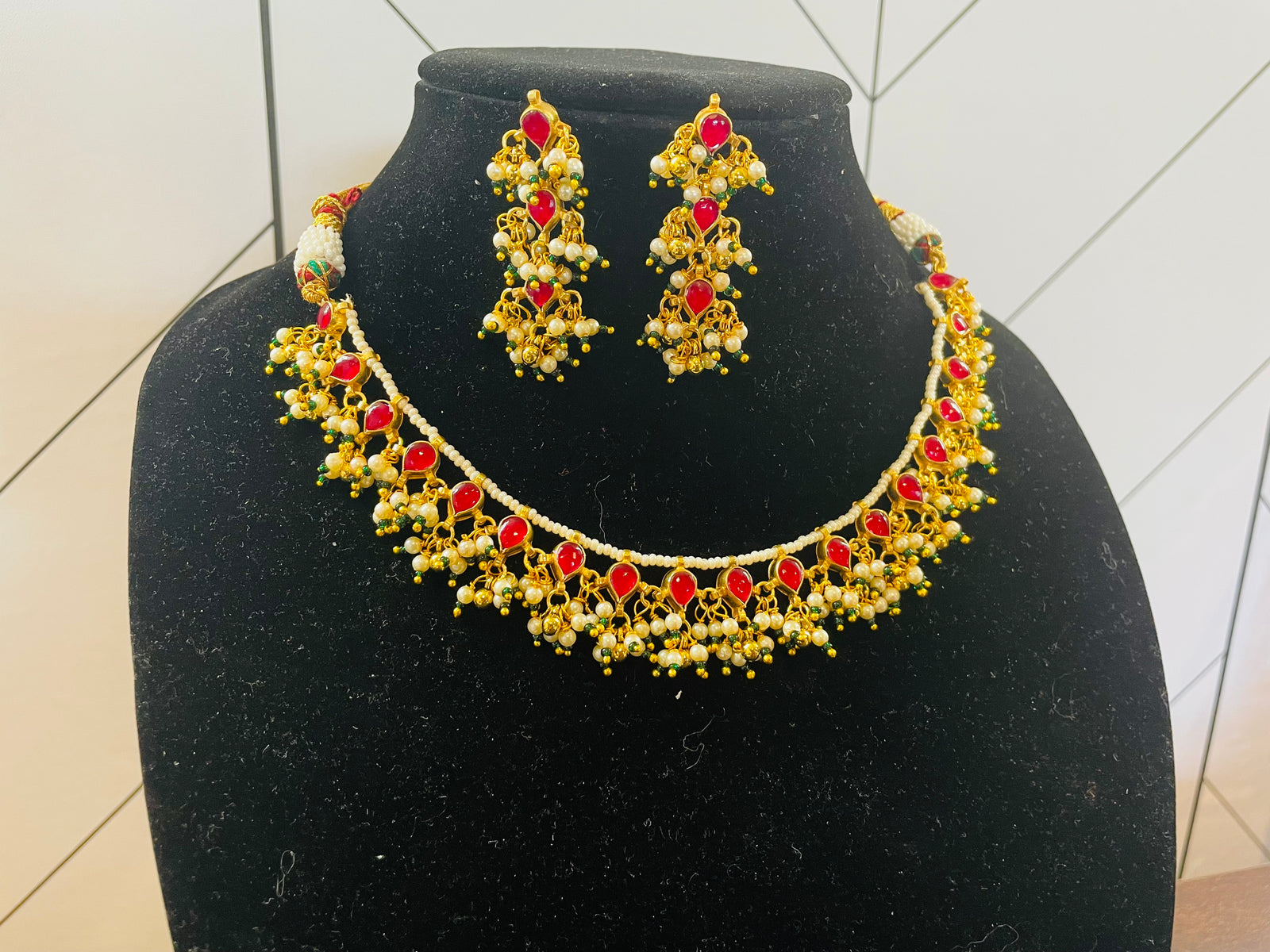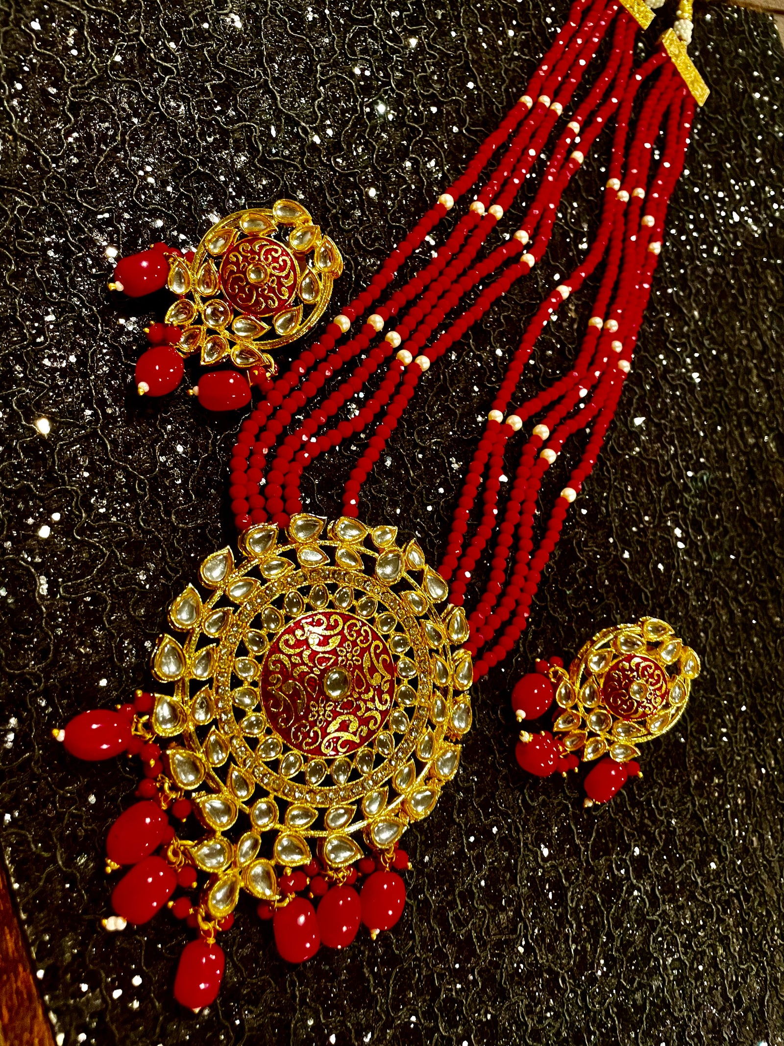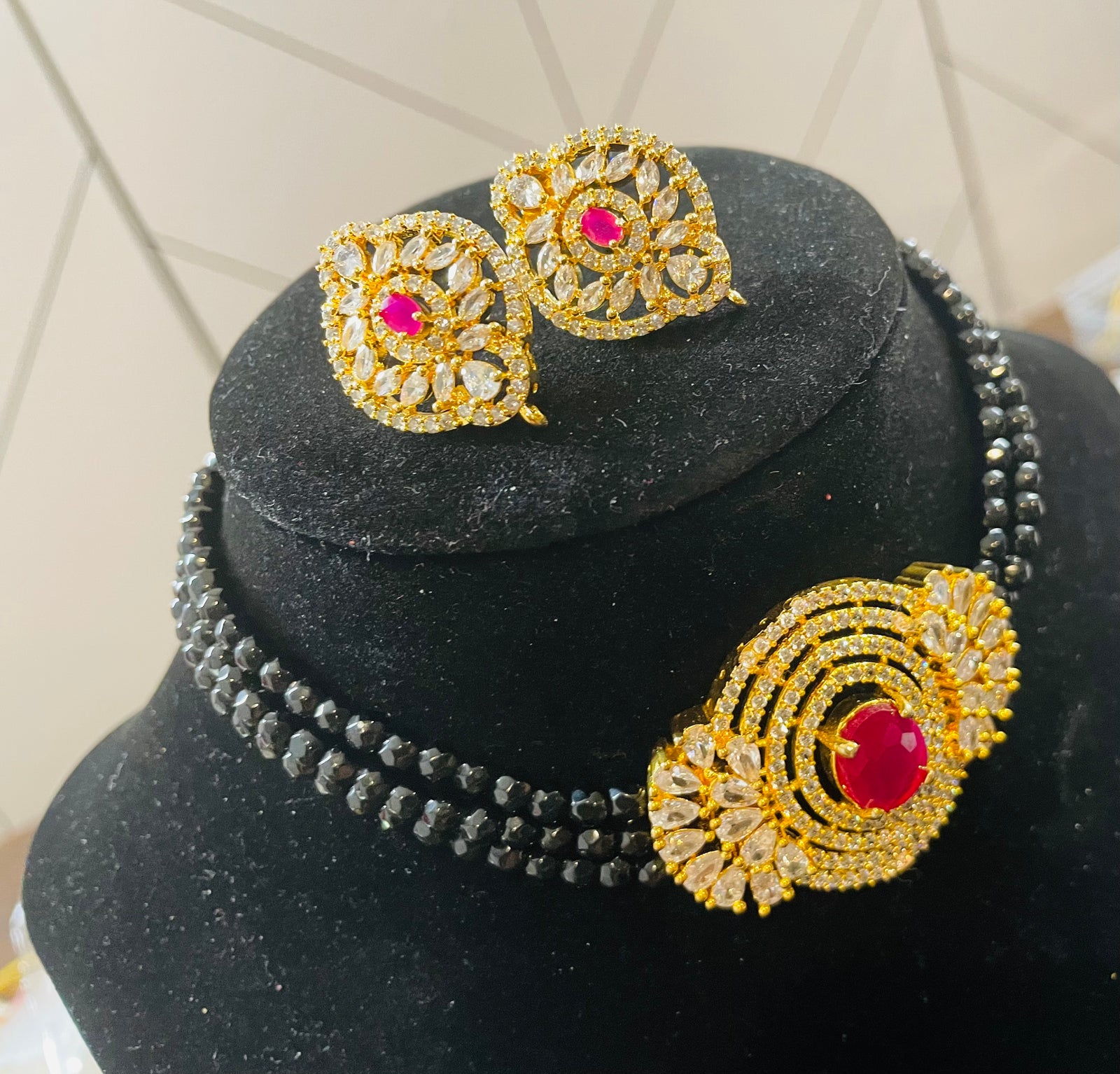 Indian Ruby CZ Gold Plated Beads Necklace Set.