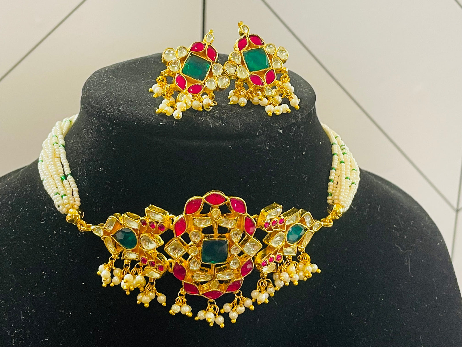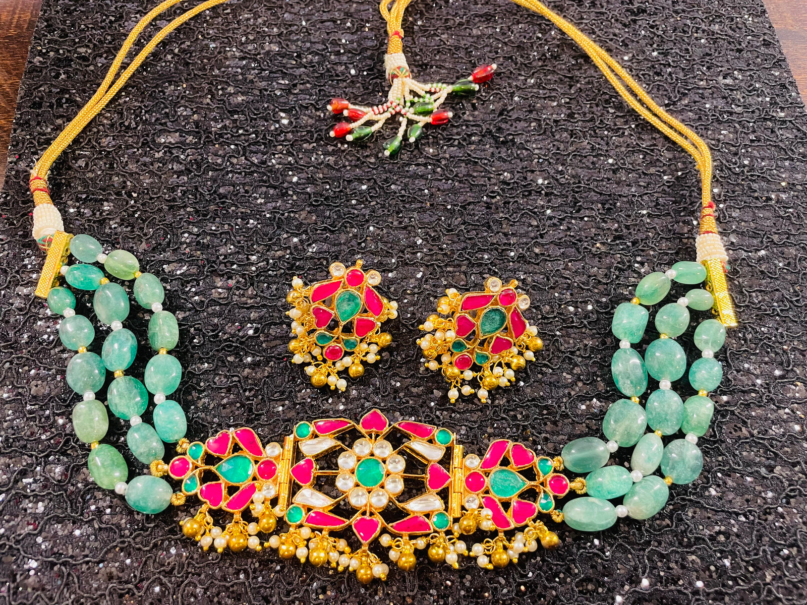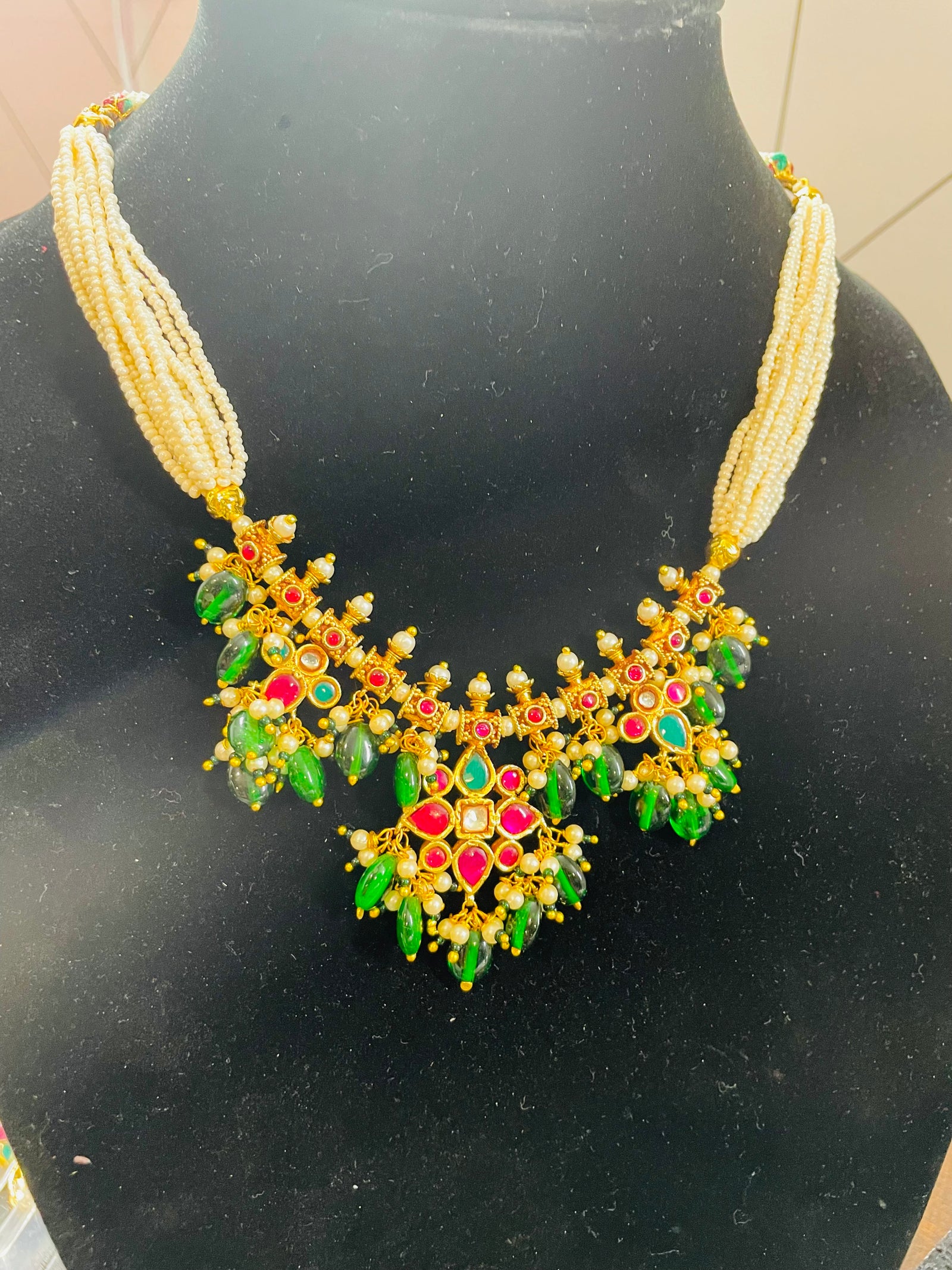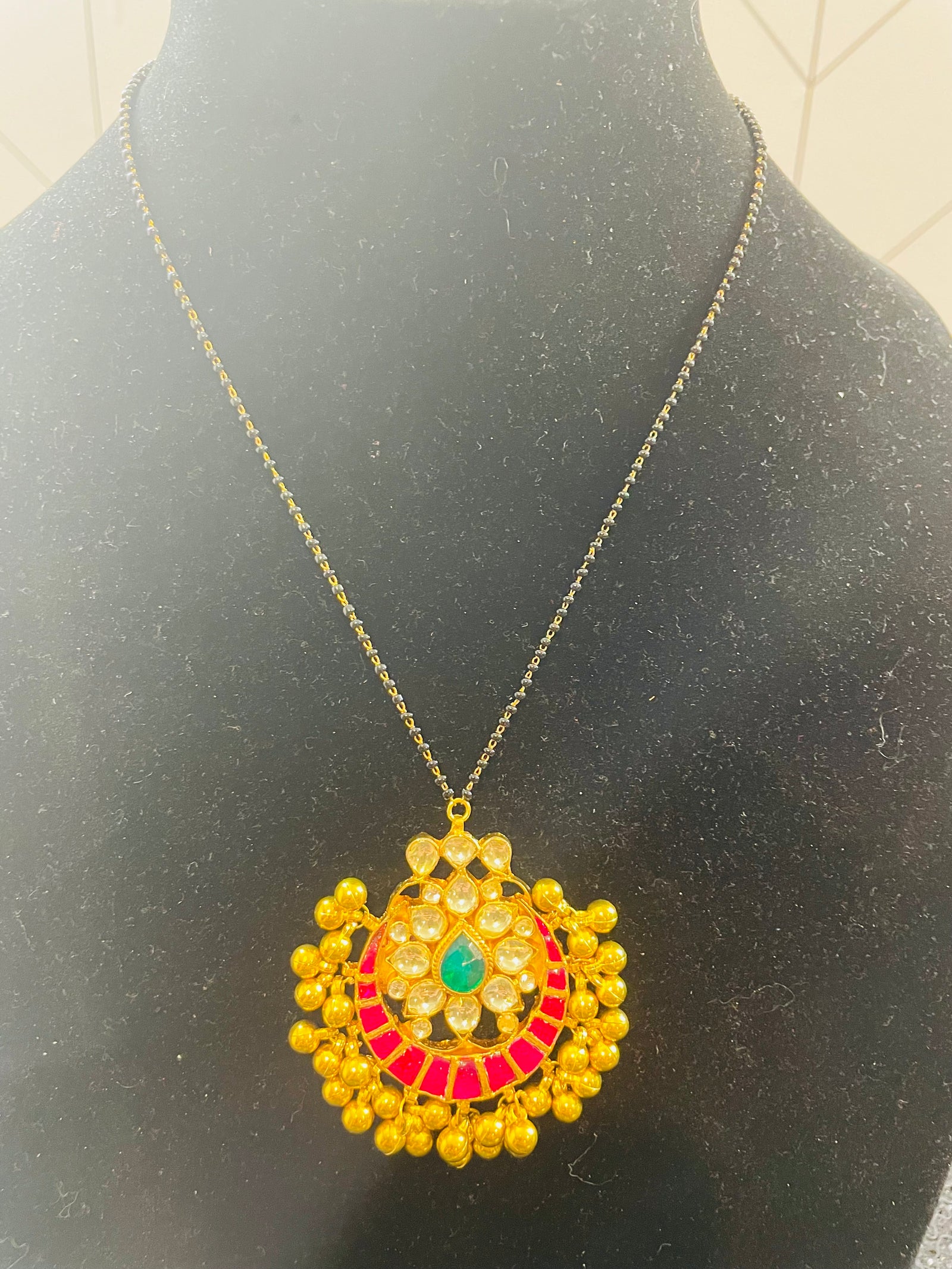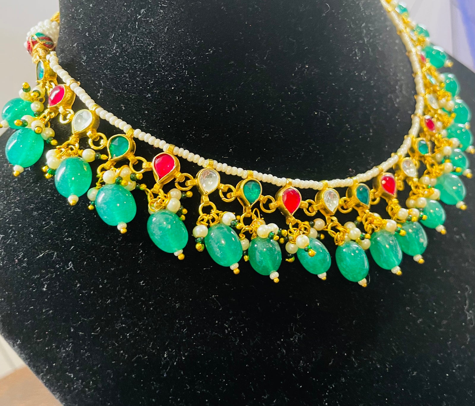 Indian Ruby CZ Gold Plated Beads Necklace Set.