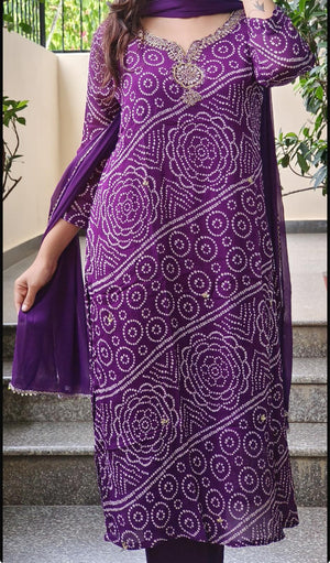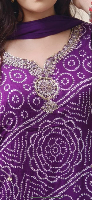 Fabric Chinon Embroidery neck a line kurta pant with Chiffon dupatta