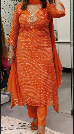 STK404-Fabric Chinon Embroidery neck a line kurta pant with Chiffon dupatta