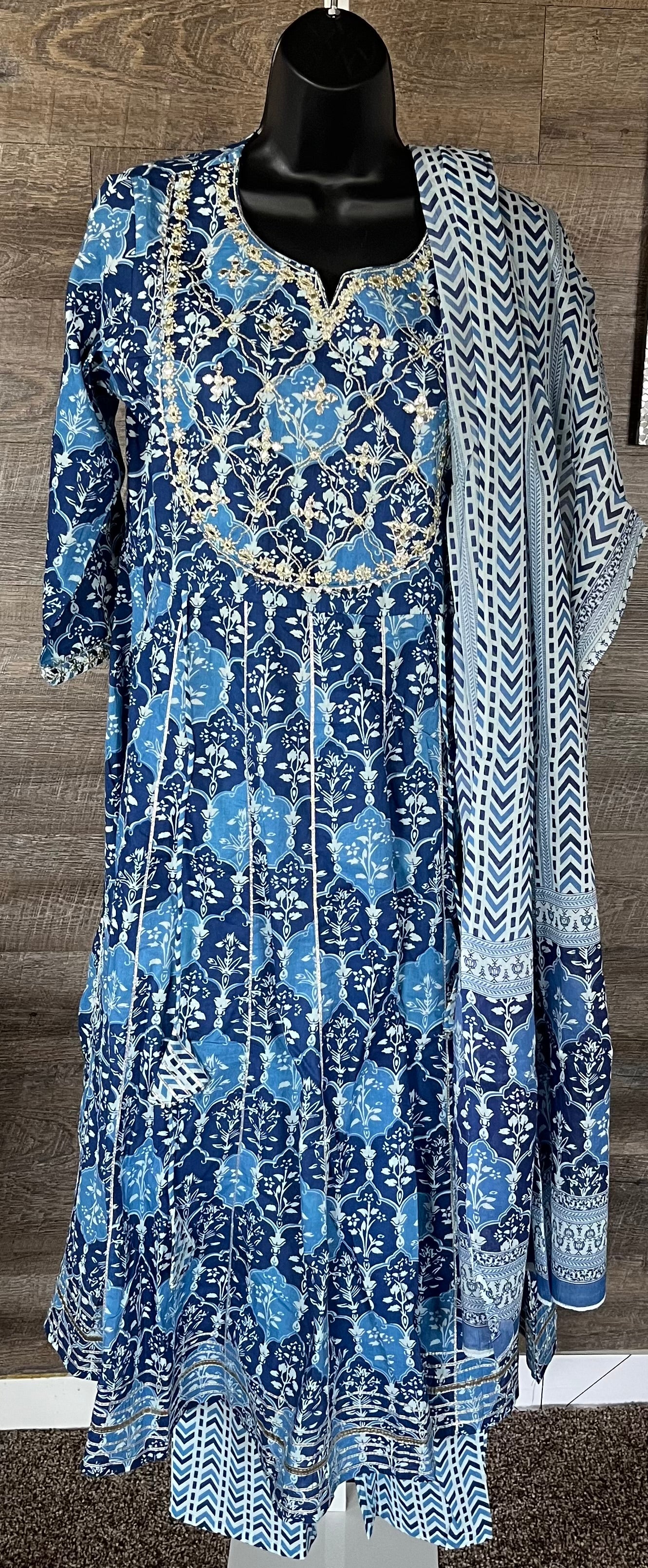STK76-Long Pure Cotton Embroidery Work Anarkali with Pant and Dupatta