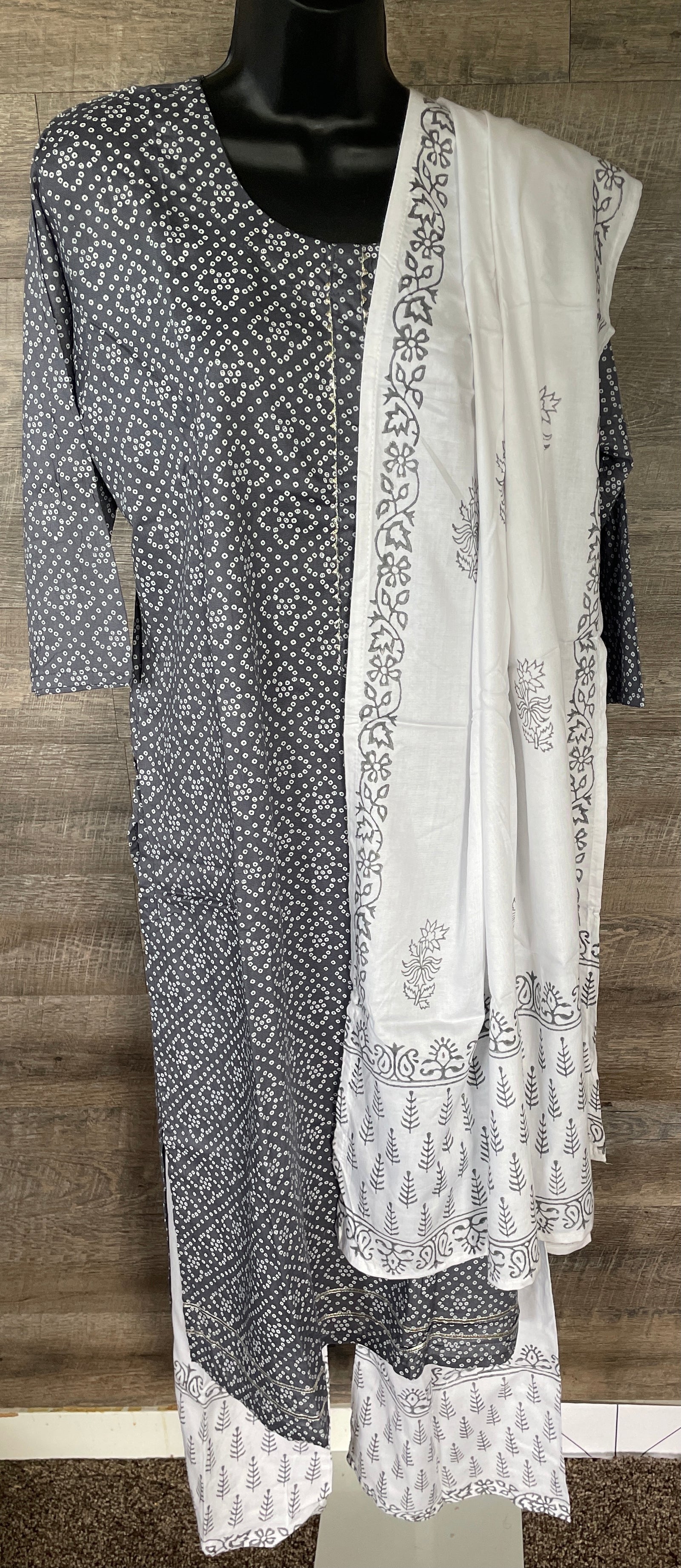 STK170-Designer Soft Cotton Kurti with Plazzo Pant & Dupatta(Grey)