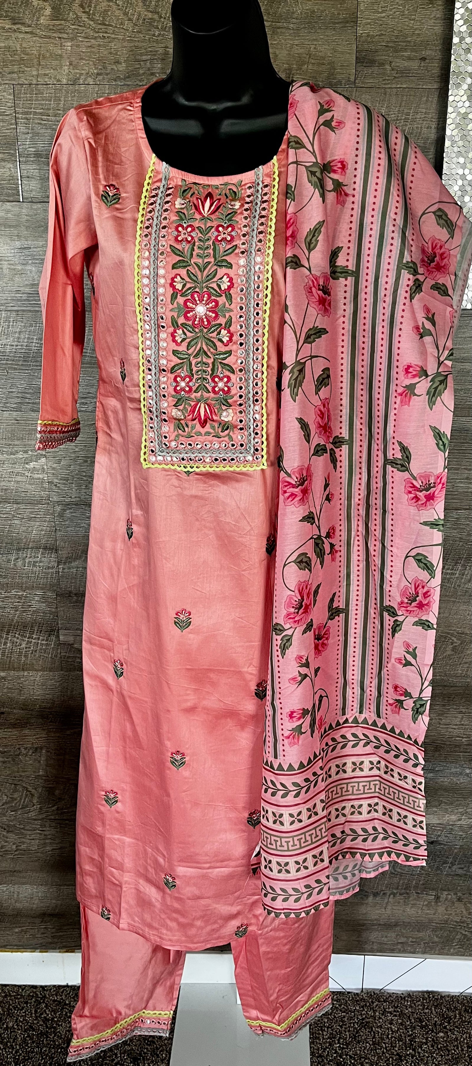 STK152-Pure Designer Cotton Embroidery Real Mirror Work Kurti with Pant and Dupatta