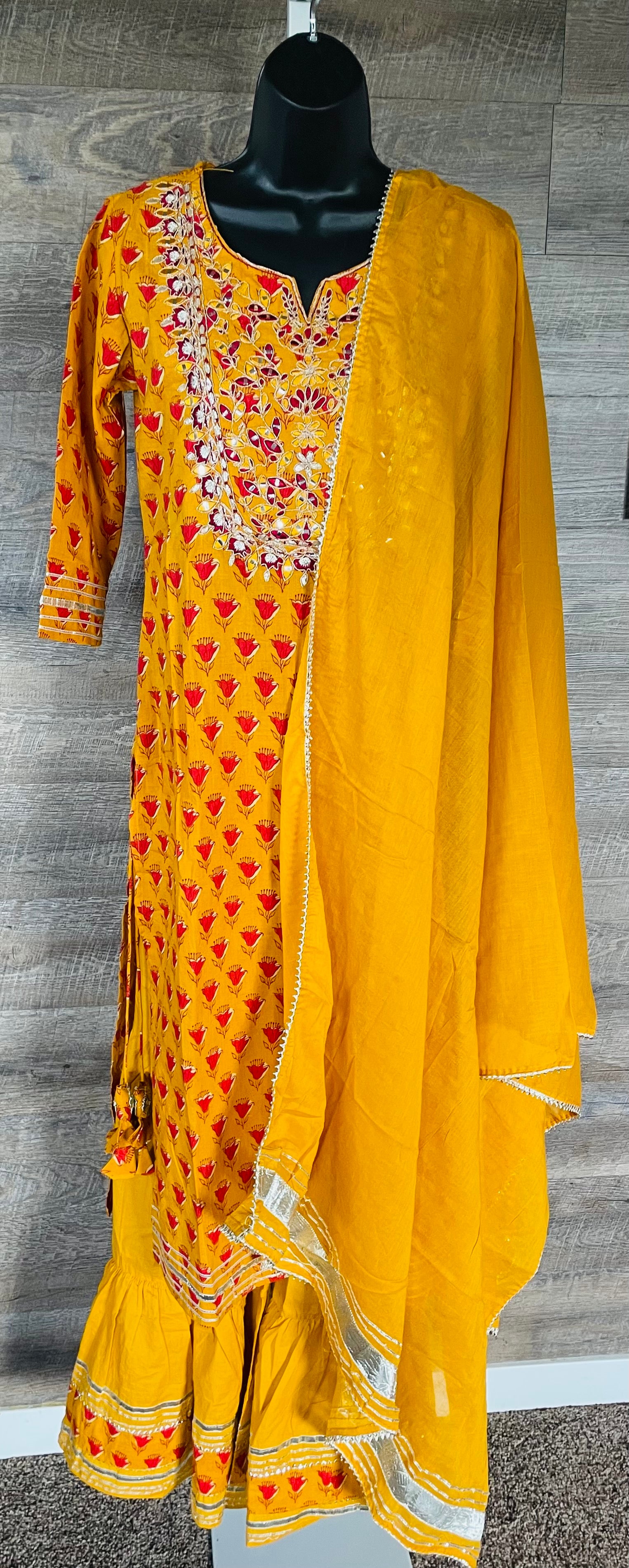 STK77-Pure Cotton Embroidery Work Kurti with Sharara Pant and Dupatta