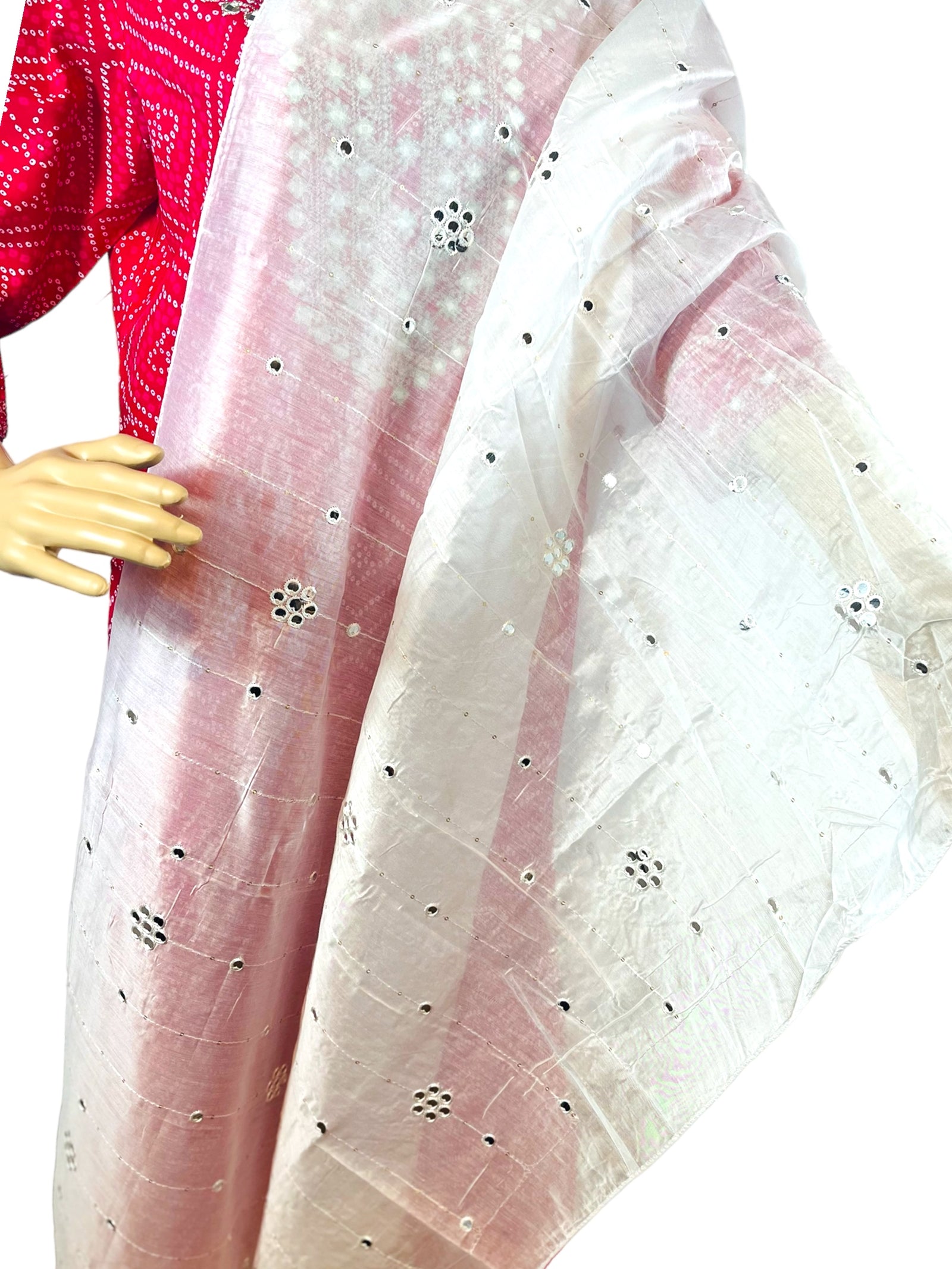STD02-Pure Soft Muslin Silk Dupatta with Plastic Mirror work(Color : White)