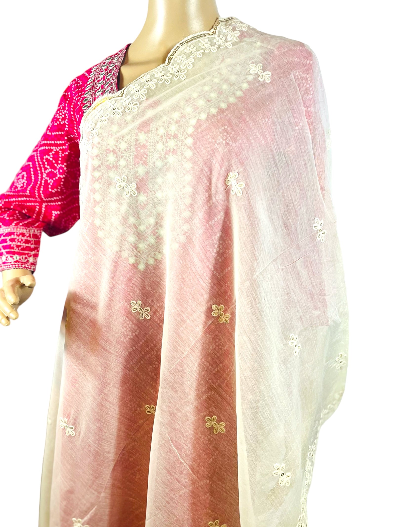 STD03-Pure Soft Cotton Cut work Dupatta with Thread work Sequence (Color : Half White)