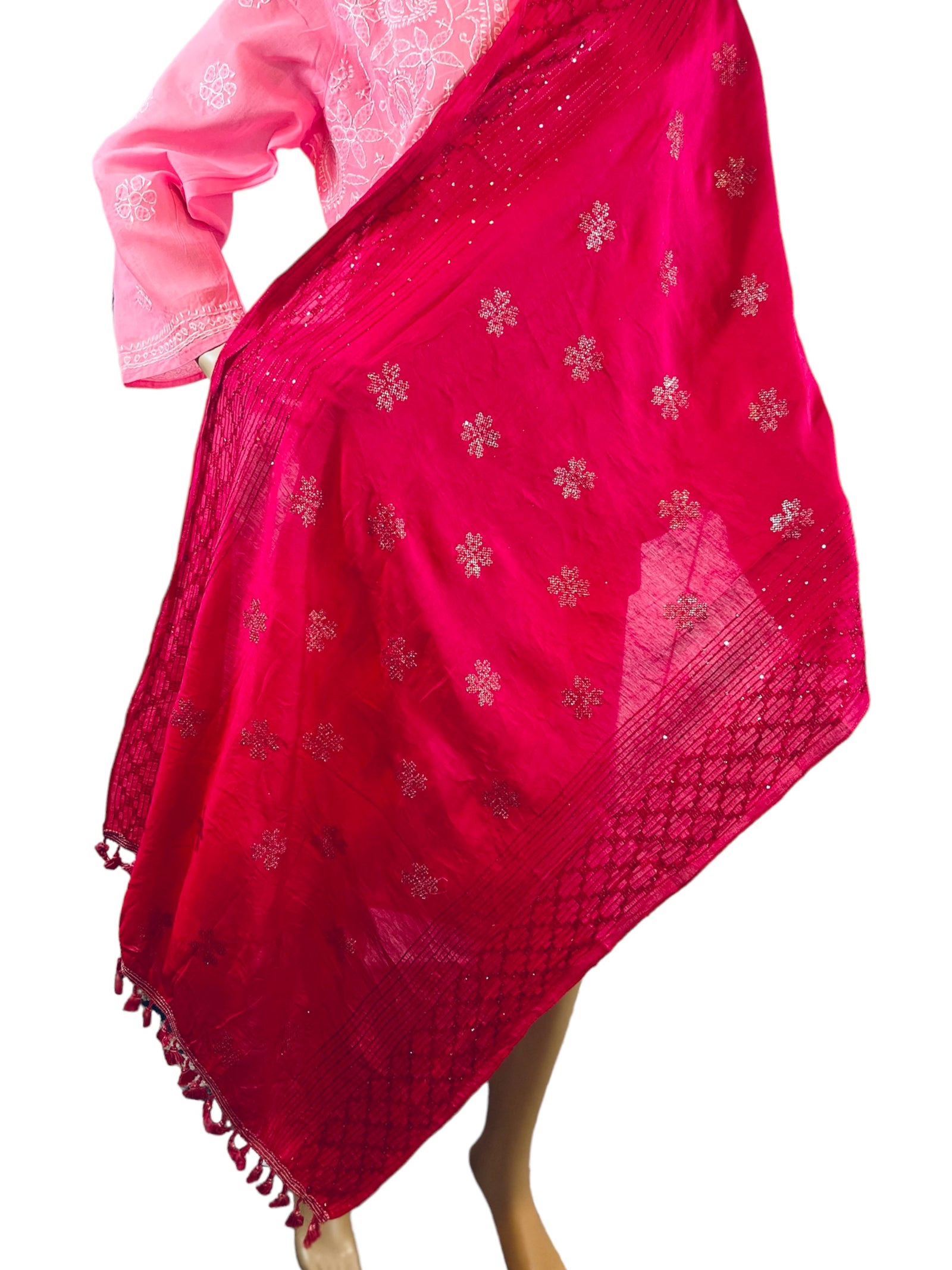 STD05-Pure Soft Muslin Silk Dupatta with Heavy Sequence work (Color : Rose Pink)
