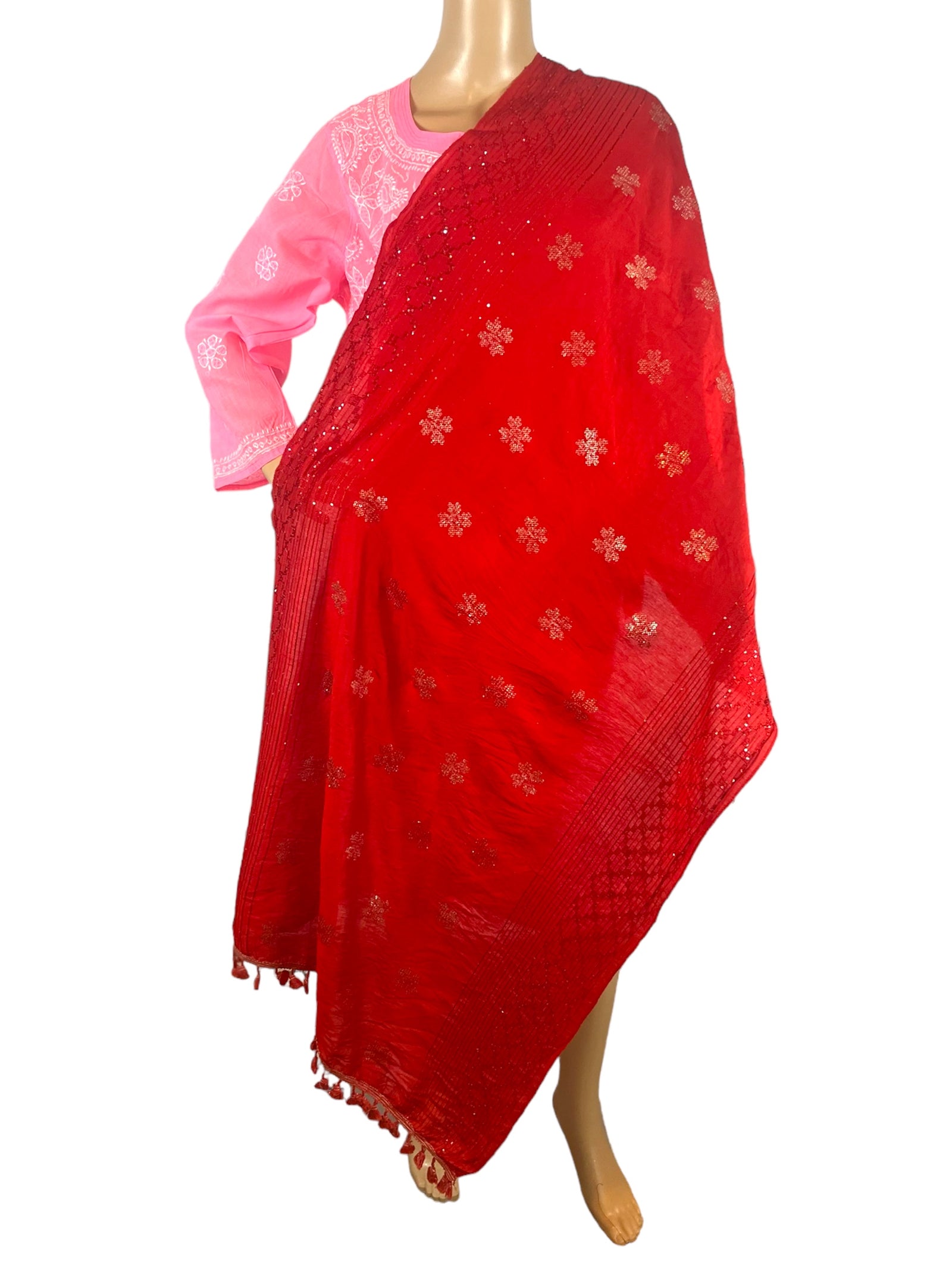 STD06-Pure Soft Muslin Silk Dupatta with Heavy Sequence work (Color : Red)