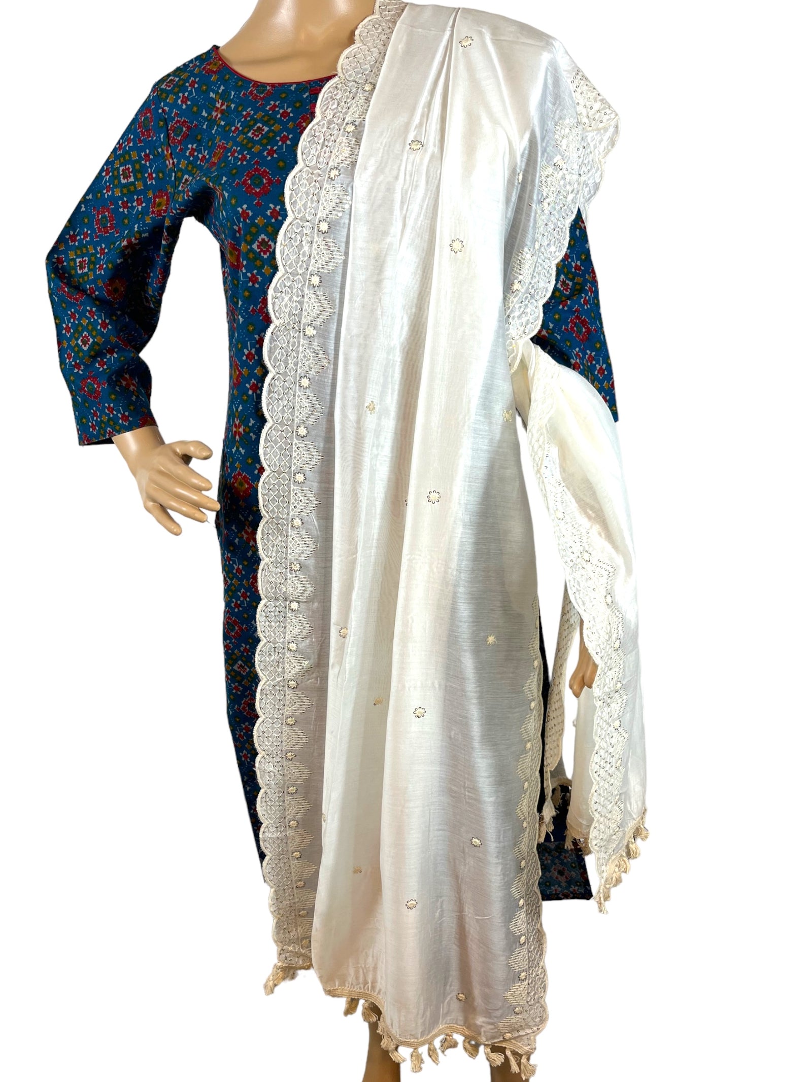 STD01-Pure Soft Muslin Silk Dupatta with Cut work Sequence(Color : White)